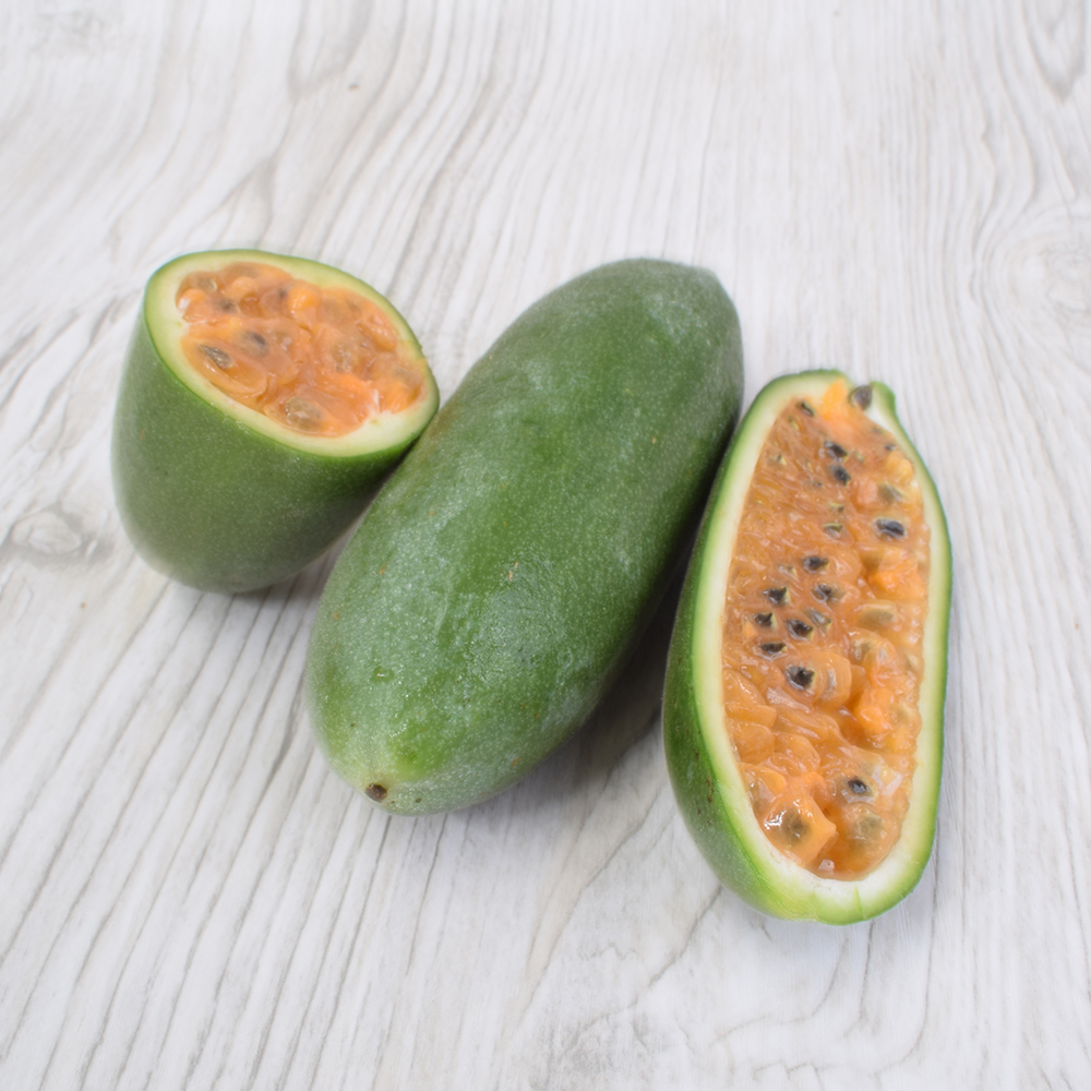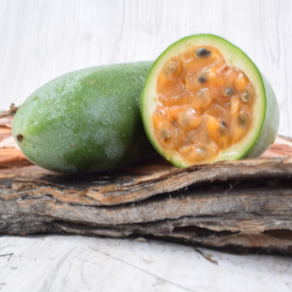 La curuba es una fruta tropical de forma ovalada, con pulpa gelatinosa y semillas negras. Es originaria de los Andes y pertenece a la familia de las Passifloras.