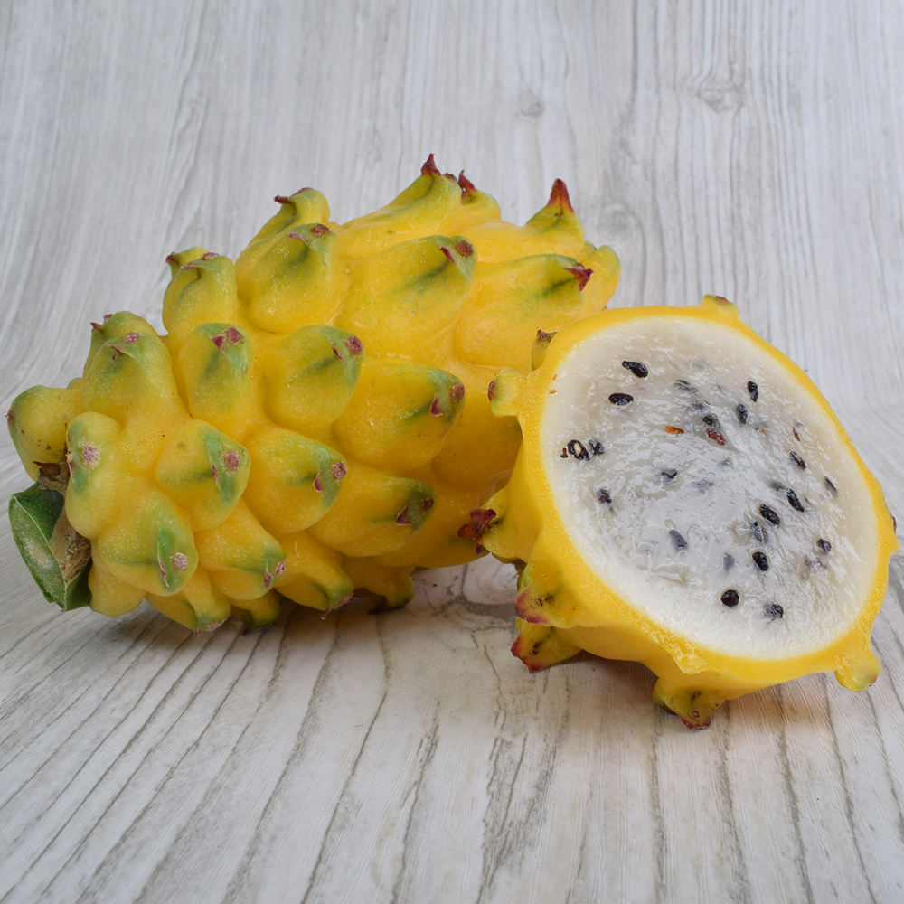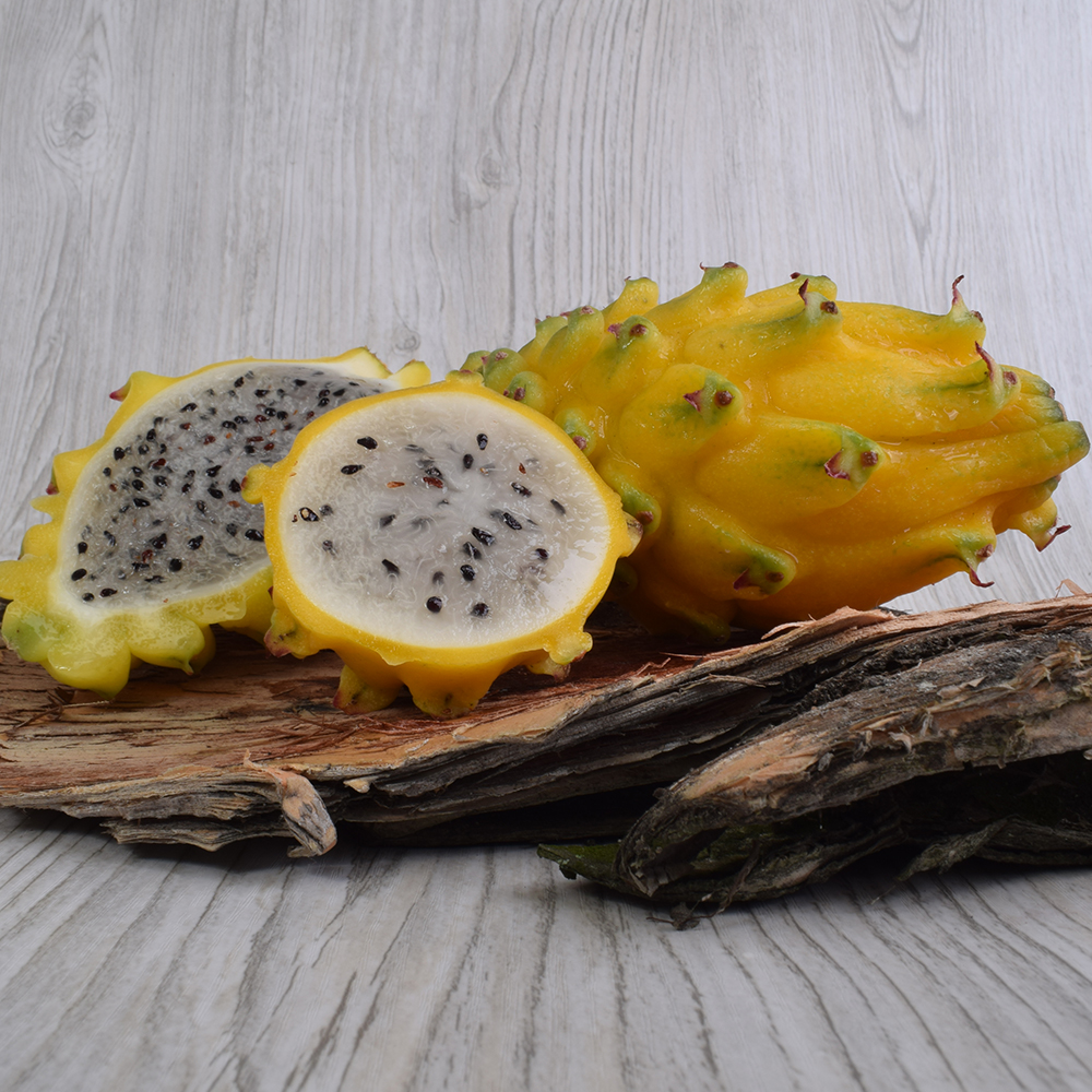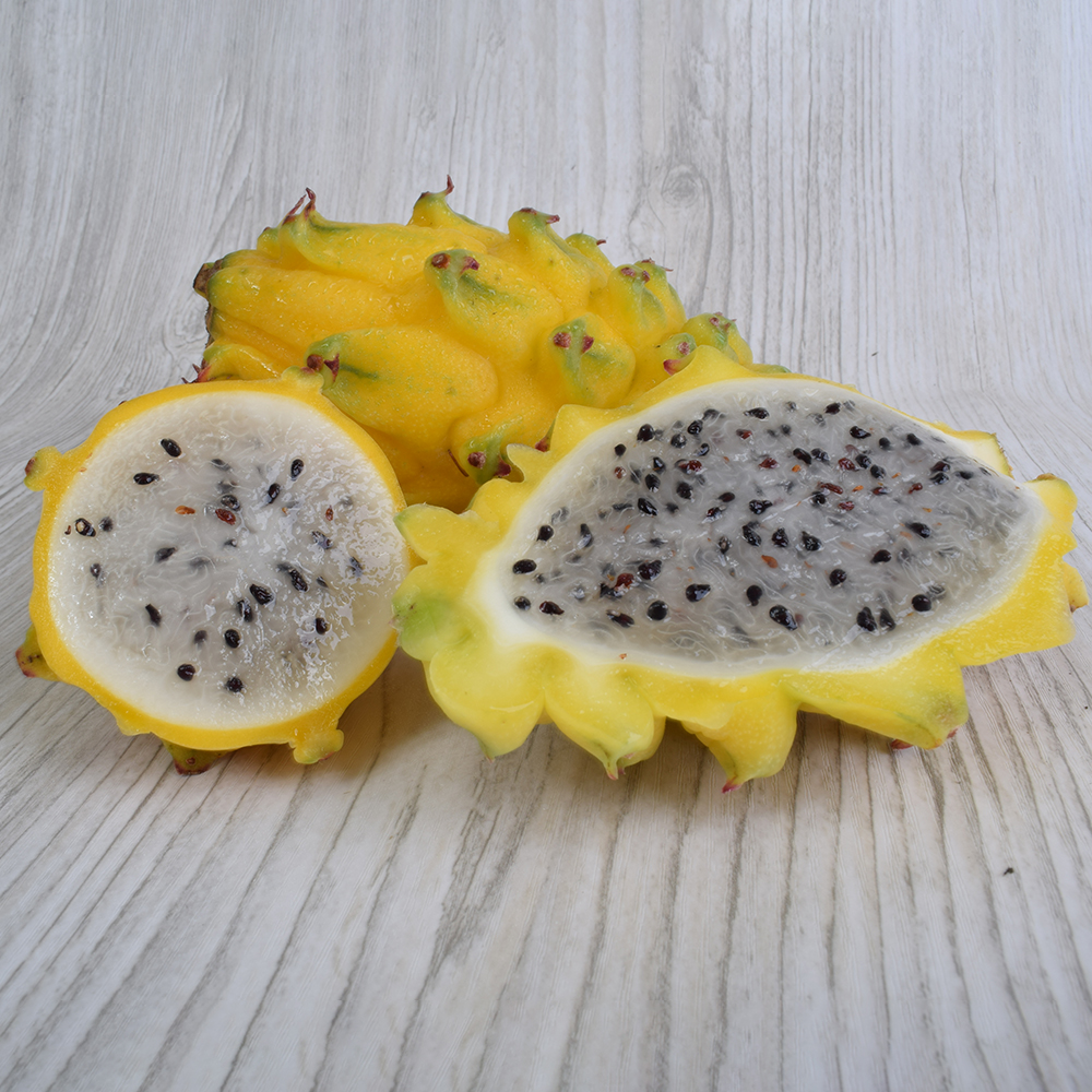 Esta fruta esta compuesta por pulpa homogénea y espumosa de color blanco y rojo-blanco y contiene semillas pequeñas, suaves y comestibles cubiertos de escamas rojas y amarillas.